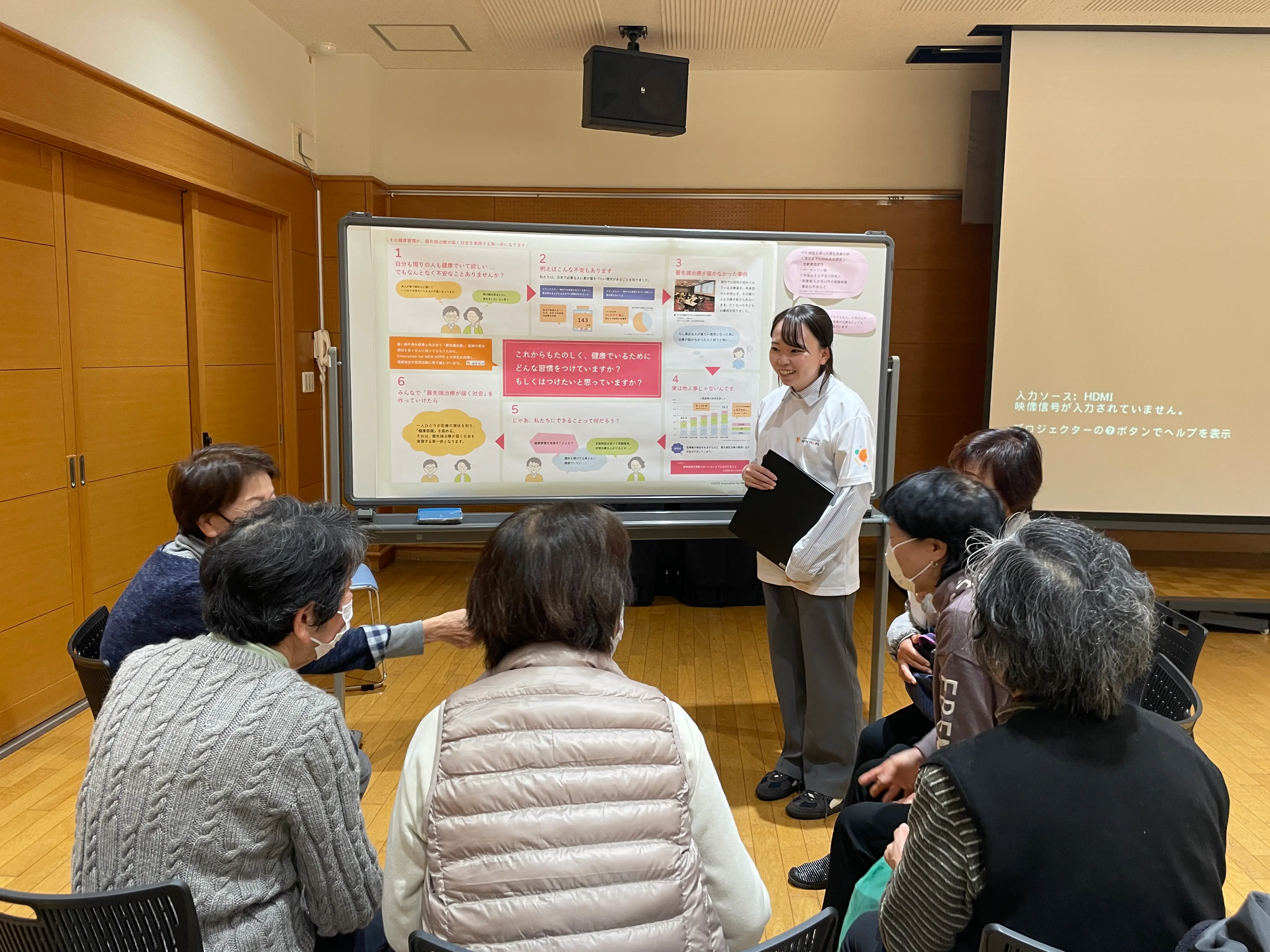 今回、明治安田生命保険相互会社(以下、明治安田)静岡支社との協働により「MY(明治安田)定期講座」の会場にお伺いし、Innovation for NEW HOPE(IfNH)の「学生が挑む!市民の疑問解決プロジェクト」でシニア世代向け資材を制作したチーム『あいしずだもんで』が、参加者の方々と対話を行いました。